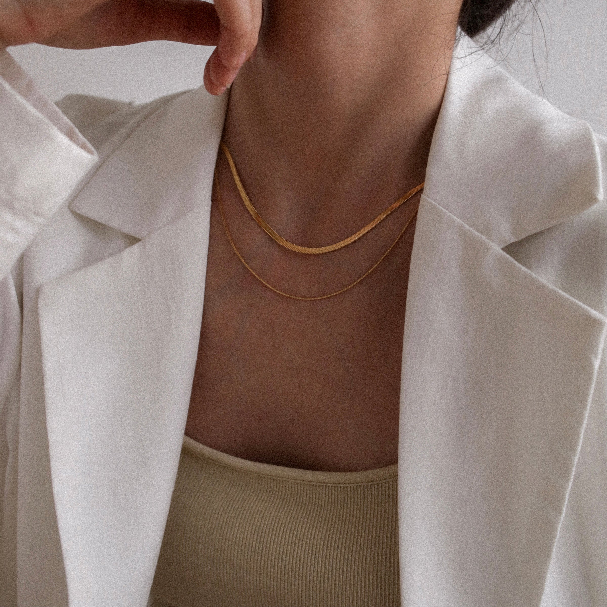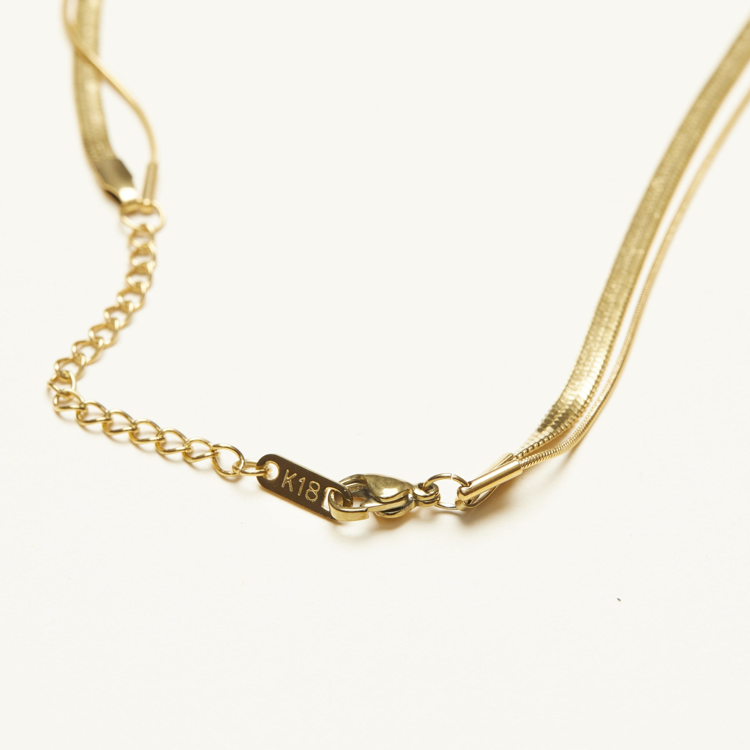 This is your ultimate herringbone necklace including two stacking chains. The two layers cannot be separated. Beautiful gold finishes, creating a stacking and multi-layering look. This can work as an additional daily piece to your jewelry collection.