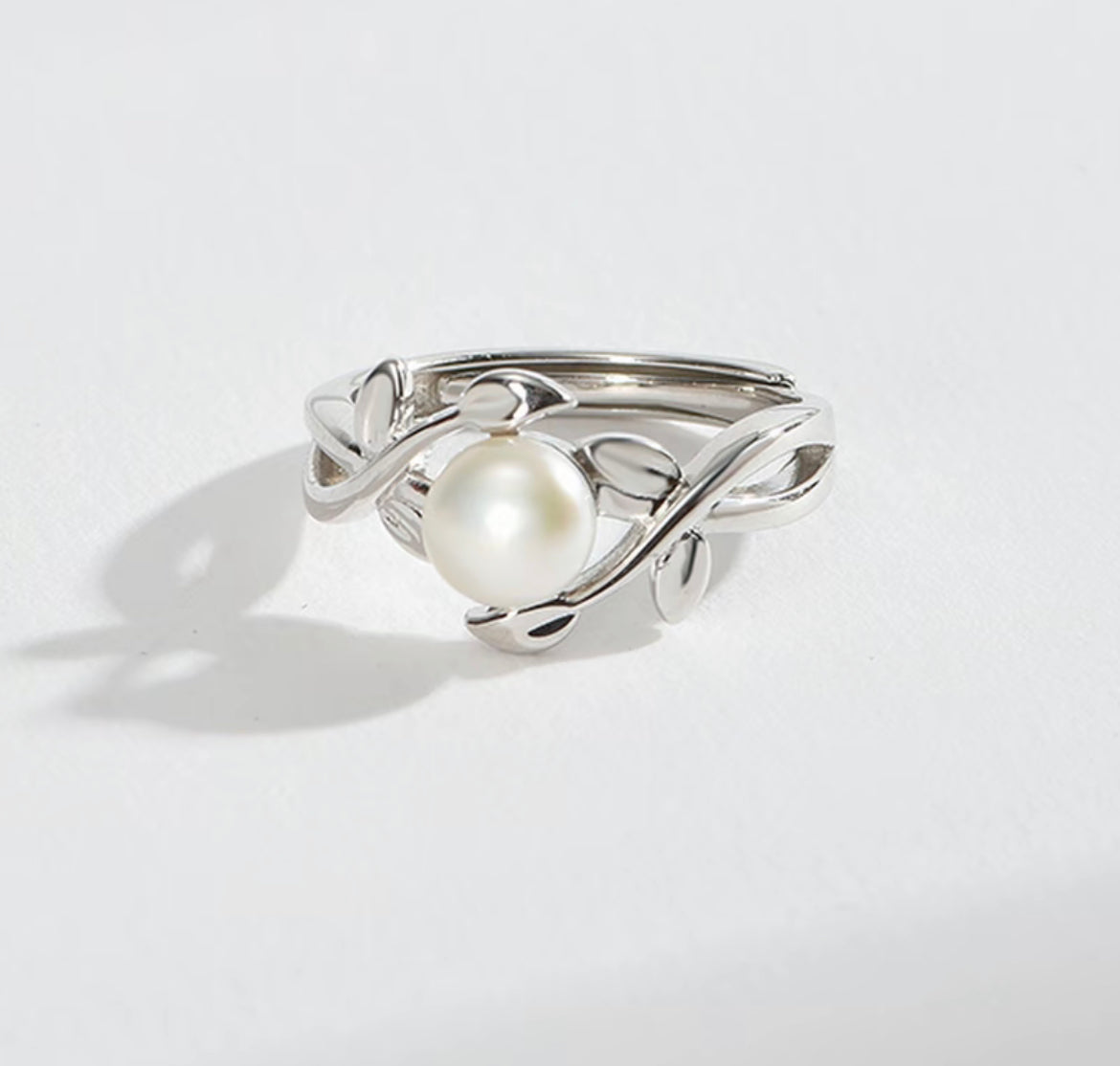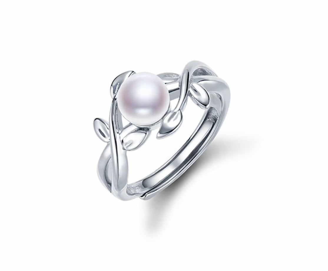 This freshwater pearl ring features a distinctive leaf design symbolizing “new beginnings.” Its minimalist yet elegant design showcases meticulously selected pearls, ensuring uniformity in size, shape, and luster for an unparalleled wearing experience.