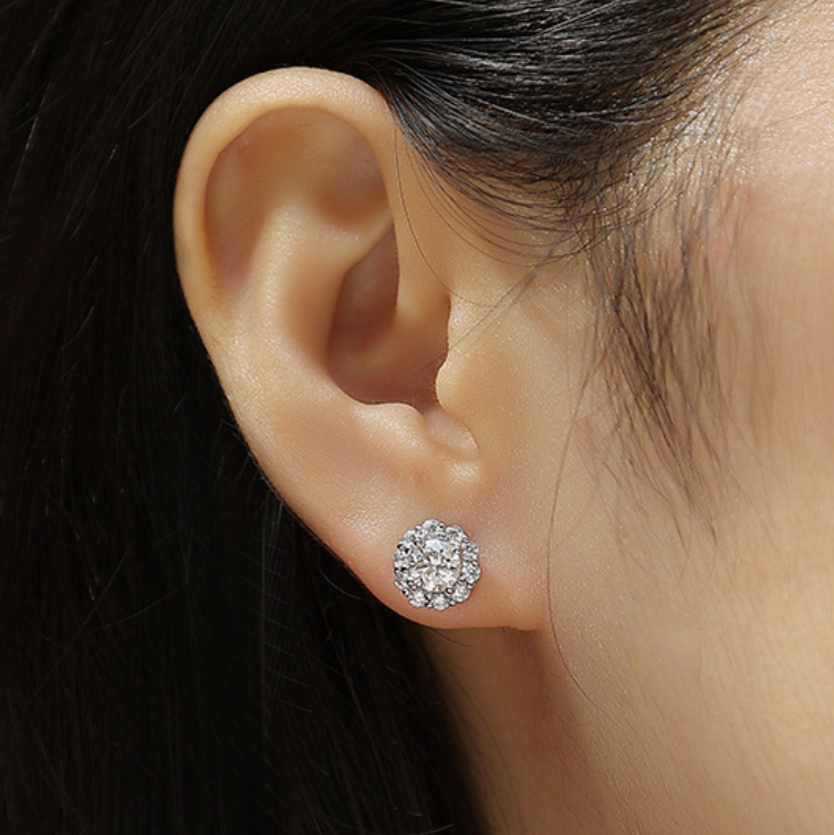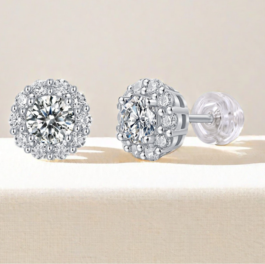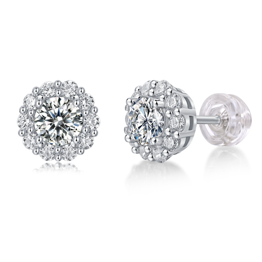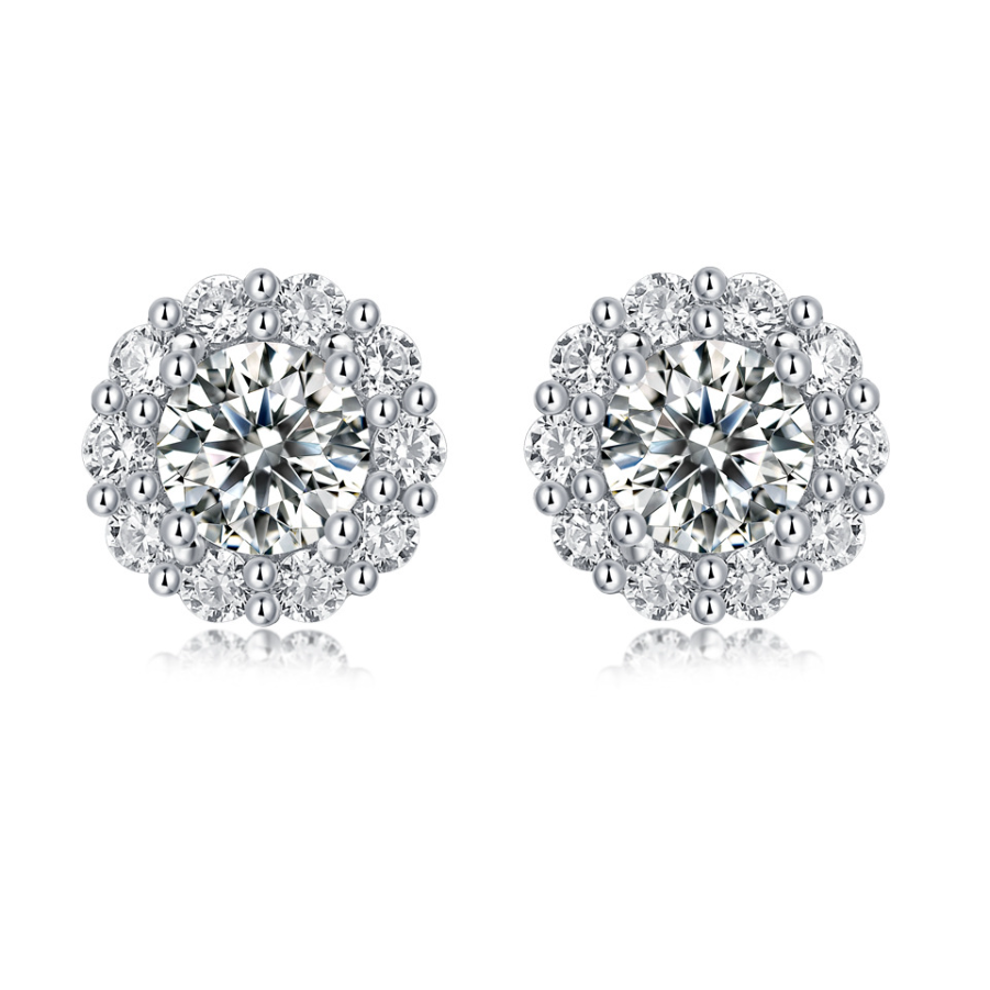 Sunflower S925 Silver Stud Earrings, D Color, 1 Carat