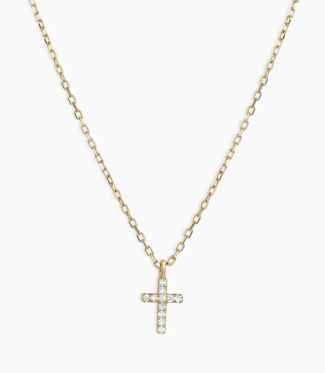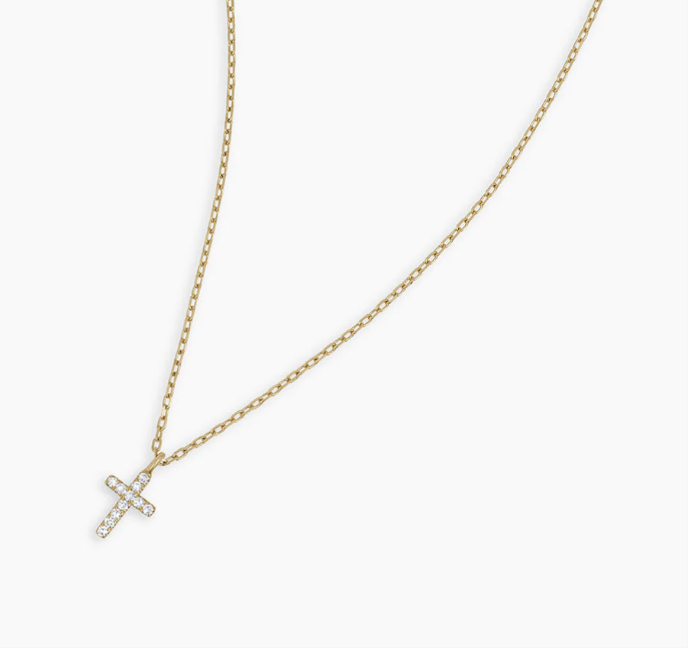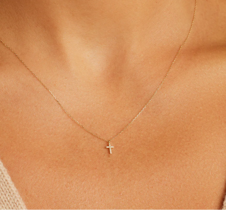 This understated diamond cross necklace can beautifully add to any outfit with its subtle shimmer. To enhance your look, layer your dainty diamond necklace with other chains or add a pop of color with a strand of beautiful gemstones.