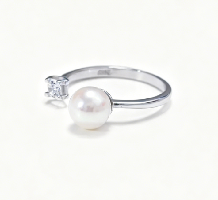 This ring perfectly captures both playfulness and elegance with its Akoya seawater pearls and open band design. Each pearl is meticulously selected to ensure uniformity in size, shape, and luster, delivering an unparalleled wearing experience.